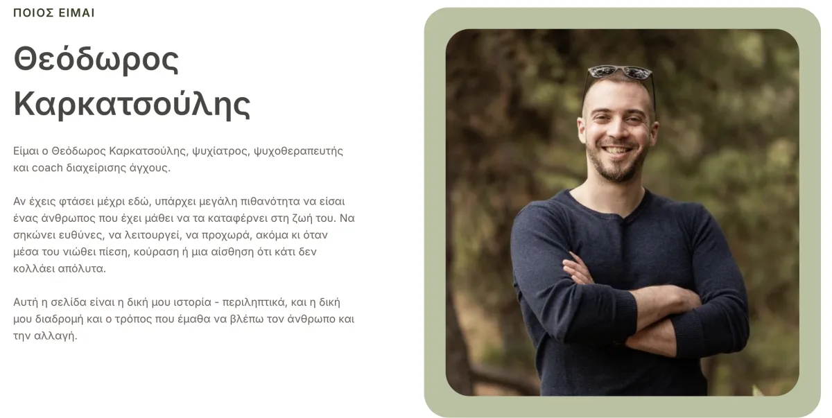 Είμαι ο Θεόδωρος Καρκατσούλης, Ψυχίατρος, Ψυχοθεραπευτής και Stress Coach.